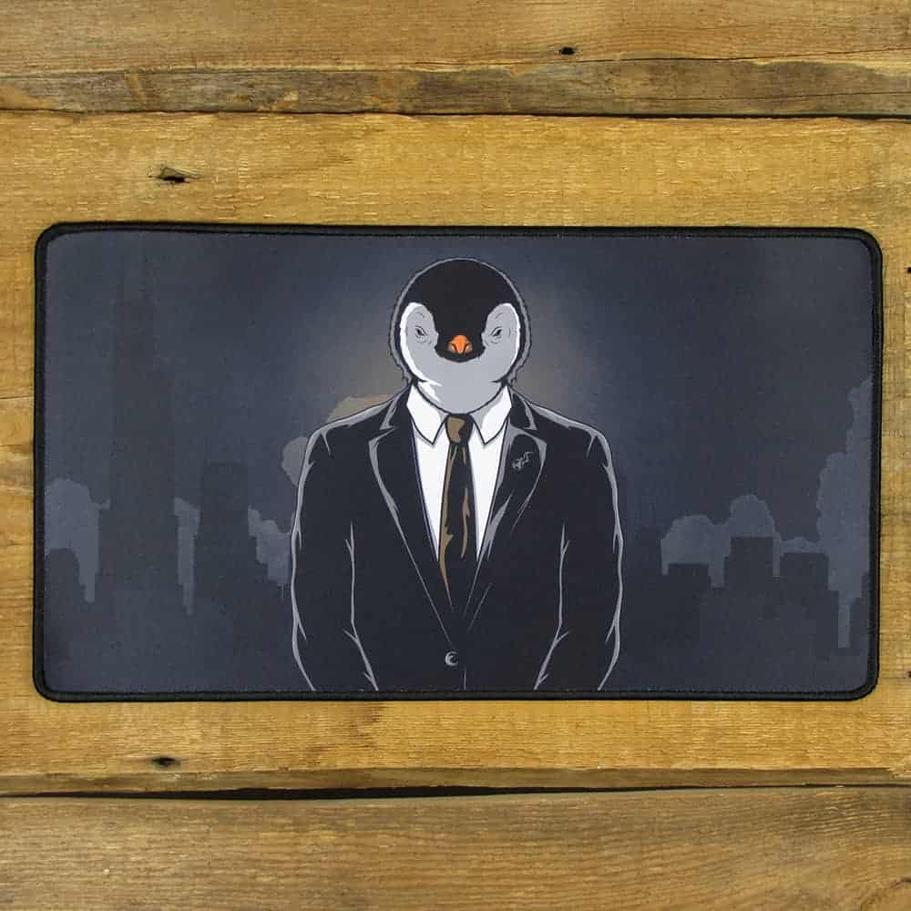 Tux... in a suit. He is very serious. This mousepad works with Linux, Windows, and MAC (we think).