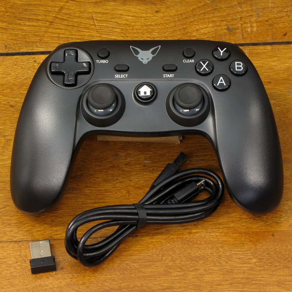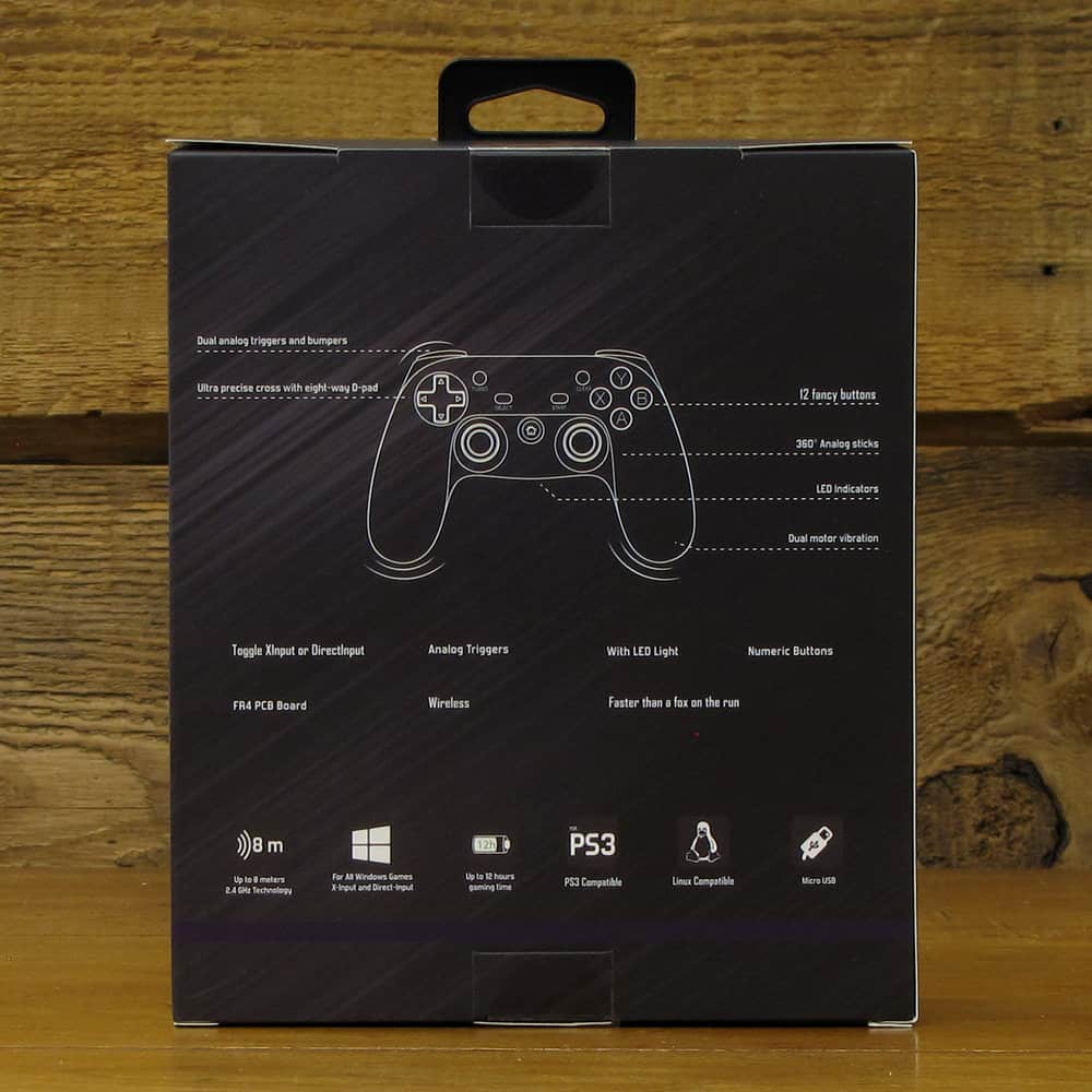 This wireless game controller is styled after the Dual Shock PlayStation controller. Your PC can detect it as either an Xbox controller or standard DirectInput (you choose).