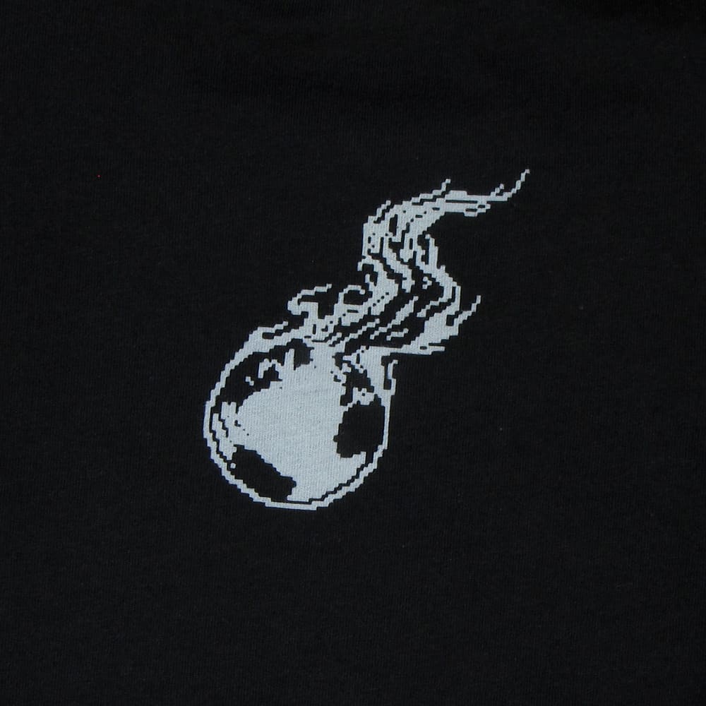 The back features a pixelated burning earth logo.